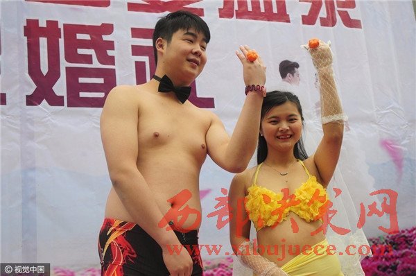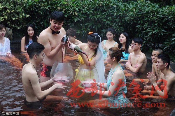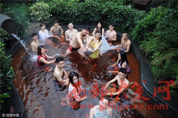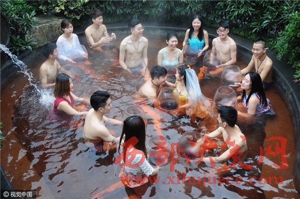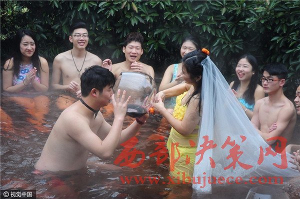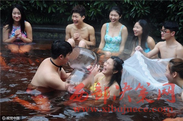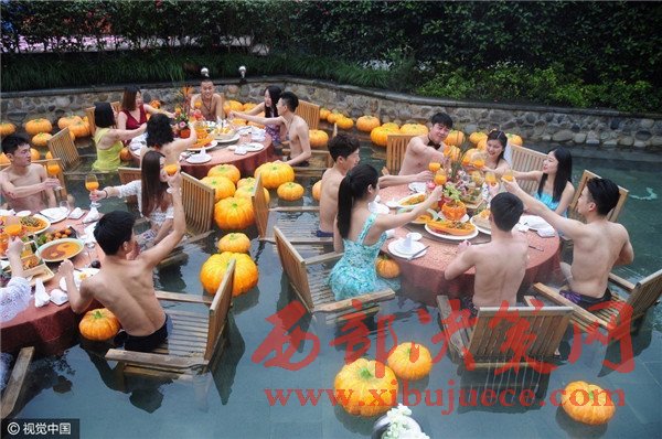 杭州現(xiàn)溫泉南瓜婚禮 新人賓客泳裝參加畫(huà)風(fēng)奇特