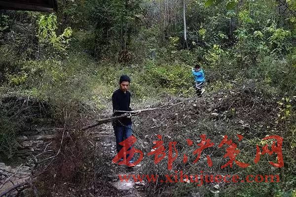 今年春節(jié)過后,張榮海就跟著村里人去了吉林長春打工,東北零下幾十度,凍得他實在受不了,每天跟著師傅學刮膩子,活很累,他力氣又小,加上粉塵太大,只干了五六個月,又跑到河北張家口去了,前后打工半年多,工錢都讓師傅領走了,只帶回家1600多塊。本打算多干幾個月,可弟弟要上學,平時吃住在繼父家,弟弟不愿待在“別人”家,所以他就跑回來照顧弟弟。進入冬季,山里人離不開火爐。這天弟弟放學回來,哥倆一起上山砍柴,為過冬做準備。