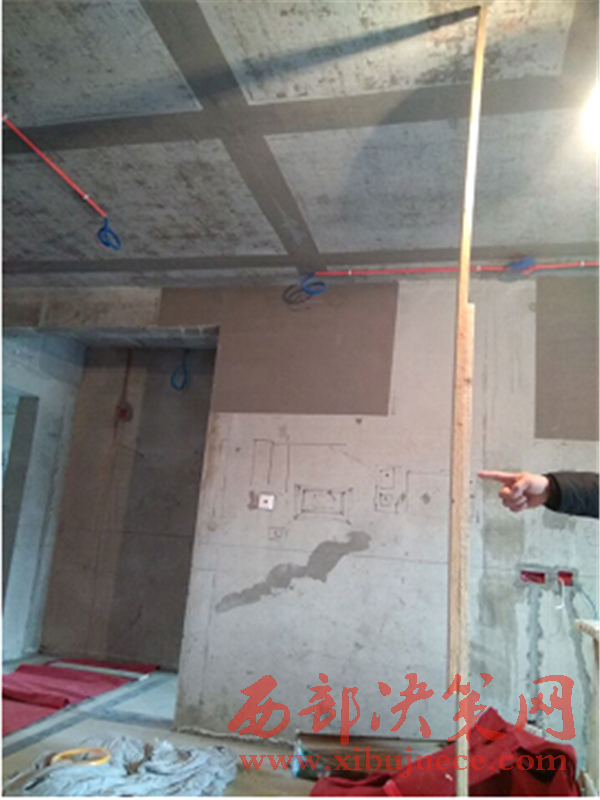 更令人目瞪口呆的是,拿一根木桿丈量,客廳中央部位和墻根部位竟錯(cuò)位約3公分左右。