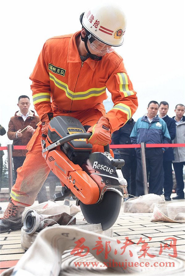 3月14日,福州市公安消防支隊(duì)?wèi)?zhàn)士在銷毀假冒偽劣消防水帶。