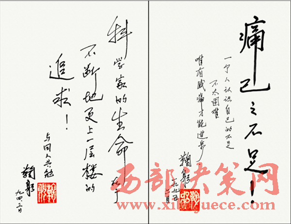 鞠躬院士在自己自傳中寫道:我對自己的評論是無偉業(yè),點(diǎn)燃一支燭光而已??部部揽酪簧F(xiàn)在蠟炬已幾乎成灰了。愿我國早日成為培養(yǎng)諾貝爾獲得者的土壤,愿我們世世代代青出于藍(lán)勝于藍(lán)。