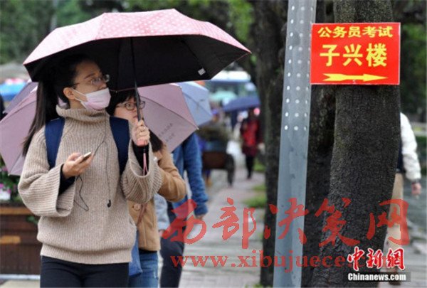 資料圖:2016年11月27日,11月27日,福州一公務(wù)員招考筆試考點(diǎn),考生在尋找考場(chǎng)。
