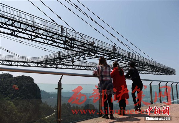 4月6日,重慶一景區(qū)內“天空懸廊”吸引眾多市民前往體驗。懸廊成“A”字形,橋面鋪設全透明玻璃,由于懸空于近300米高的懸崖峭壁之上,又沿懸崖向外延伸在80米的空中,因此取名為“天空懸廊”。相比美國科羅拉多觀景廊橋向外懸挑21米,天空懸廊向外懸挑80米更為驚險刺激。目前,該項目正在申請吉尼斯世界紀錄。