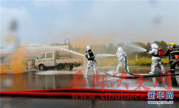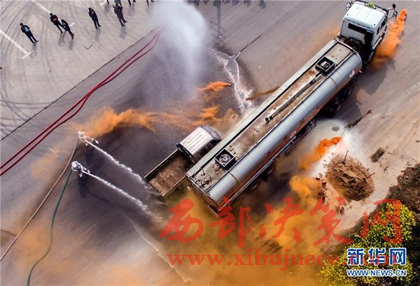 當(dāng)日,山東省菏澤市消防、交通等部門(mén)為有效應(yīng)對(duì)?;返缆愤\(yùn)輸突發(fā)事件,提高應(yīng)急救援和協(xié)調(diào)能力,聯(lián)合開(kāi)展?;愤\(yùn)輸企業(yè)事故應(yīng)急救援演練,出動(dòng)消防、救護(hù)等車輛10余臺(tái),近百人參加演練。