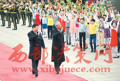 會(huì)談前,習(xí)近平在人民大會(huì)堂東門外廣場(chǎng)為吳廷覺舉行歡迎儀式。習(xí)近平主席夫人彭麗媛、全國人大常委會(huì)副委員長(zhǎng)嚴(yán)雋琪、國務(wù)委員楊潔篪、全國政協(xié)副主席王家瑞等出席。