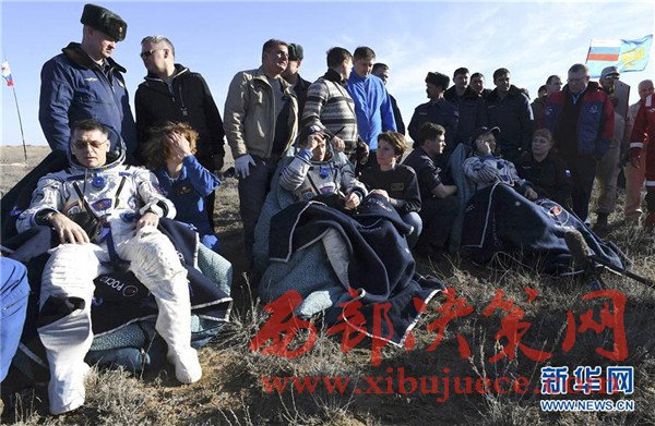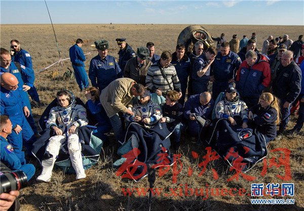 國際空間站三名宇航員乘坐“聯(lián)盟MS-02”飛船著陸