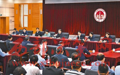 之后,習近平來到學生活動中心三層會議室,同中國政法大學師生和首都法學專家、法治工作者代表、高校負責同志座談。中國政法大學黨委書記石亞軍、終身教授張晉藩、民商經(jīng)濟法學院學生潘輝和北京市朝陽區(qū)人民法院奧運村法庭庭長劉黎先后發(fā)言。他們結合實際,談教育管理、教書育人、學習生活、法治實踐。