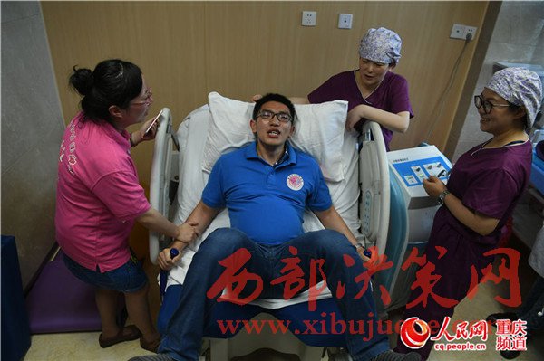 “??!疼死啦!”“快,暫停一下,暫停一下!……生孩子到底有多痛?在母親節(jié)來臨之際,重慶婦幼保健院邀請(qǐng)10對(duì)家庭的準(zhǔn)爸爸體驗(yàn)分娩疼痛,用感同身受致敬母親節(jié)。在現(xiàn)場(chǎng),準(zhǔn)爸爸們通過分娩疼痛體驗(yàn)儀體驗(yàn)1級(jí)到10級(jí)疼痛,這個(gè)過程雖然只有兩三分鐘,他們?cè)谧畛蹼A段還故作淡定,而在疼痛高潮來臨時(shí)已是緊閉雙眼、面部扭曲、嗷嗷直叫。還有幾位準(zhǔn)爸爸,在體驗(yàn)到8級(jí)時(shí),就已經(jīng)雙腿抽筋,不得不示意挑戰(zhàn)失敗。參加完體驗(yàn)的“孕爸”們紛紛感慨女人生孩子不易,會(huì)更加感恩母親的生育之痛,更加關(guān)心疼愛老婆。