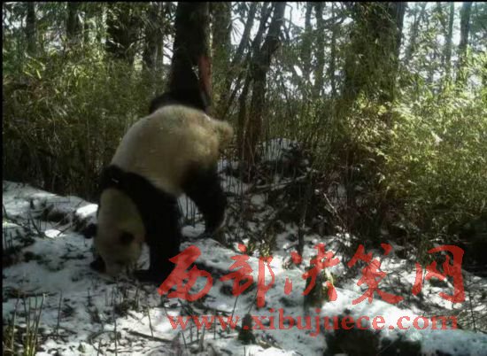 臥龍國家級自然保護區(qū)木江坪保護站紅外攝像機拍攝到的大熊貓在樹上做標(biāo)記求偶