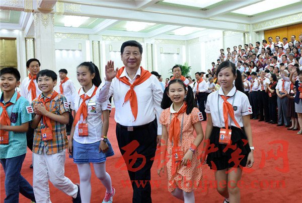 2015年6月1日,習(xí)近平在北京人民大會堂親切會見中國少年先鋒隊第七次全國代表大會全體代表。