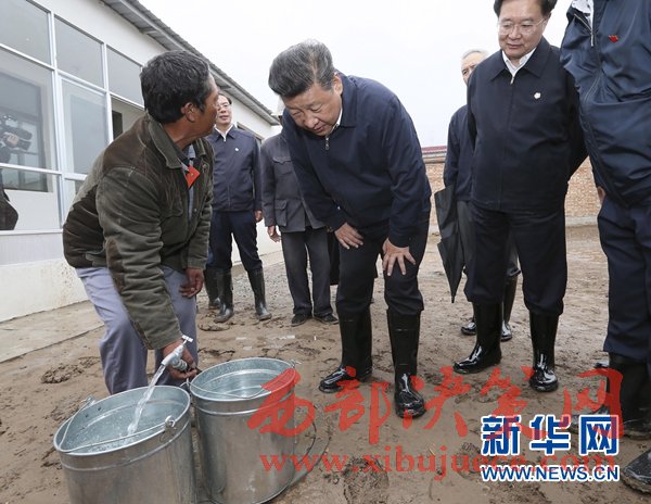 2016年8月22日至24日,中共中央總書記、國(guó)家主席、中央軍委主席習(xí)近平在青海調(diào)研考察。這是8月23日上午,習(xí)近平在海東市互助土族自治縣五十鎮(zhèn)班彥村村民呂有章的新家了解自來水使用情況。 (記者 蘭紅光 攝)
