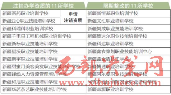 新疆維吾爾自治區(qū)本級民辦職業(yè)培訓(xùn)學(xué)校中11所被注銷了辦學(xué)資質(zhì),如果您要參加職業(yè)培訓(xùn),選擇培訓(xùn)機(jī)構(gòu)的時(shí)候記得要擦亮眼。