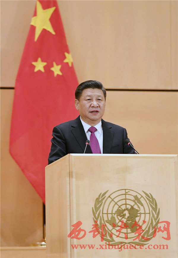 2017年1月18日,國家主席習(xí)近平在瑞士日內(nèi)瓦萬國宮出席“共商共筑人類命運(yùn)共同體”高級別會(huì)議,并發(fā)表題為《共同構(gòu)建人類命運(yùn)共同體》的主旨演講。(記者 饒愛民 攝)
