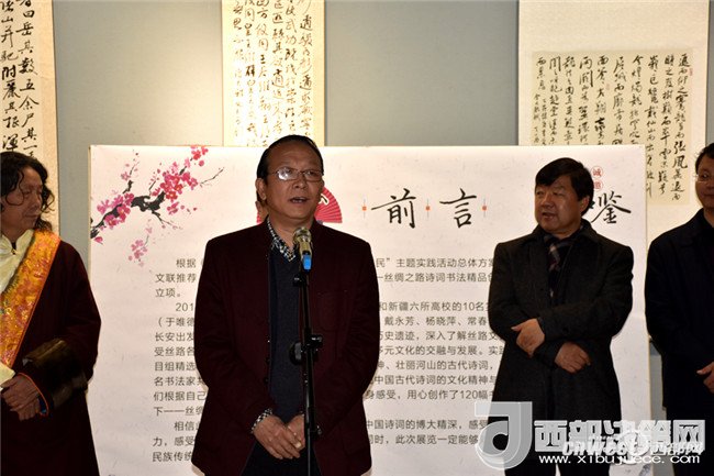 由于孟晨、程建虎著作,陜西新華出版集團(tuán)三秦出版社出版的“和天下——絲綢之路詩詞書法創(chuàng)作精品集”在展覽開幕式上同時發(fā)行。陜西師范大學(xué)書法文化研究院秘書長李衛(wèi)東,西安交通大學(xué)書法系博士生導(dǎo)師楊鎖強教授,陜西省文聯(lián)組聯(lián)部部長王行舟,陜西省書法家協(xié)會副主席劉偉群以及省內(nèi)外各界書法愛好在500余人出席了開幕式。開幕式和研討會由中國書協(xié)理事,省書協(xié)常務(wù)副主席,中國書法學(xué)院院長于唯德教授主持。甘肅省書協(xié)副主席王青彥做主題發(fā)言。