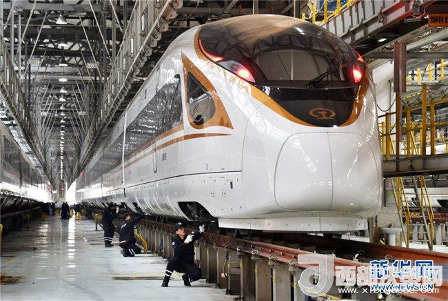 12月27日,天津動(dòng)車客車段動(dòng)車運(yùn)用所工作人員對“復(fù)興號”動(dòng)車組進(jìn)行巡檢,為鐵路調(diào)圖做好安全保障。從鐵路部門了解到,全國鐵路將于12月28日起實(shí)施新的列車運(yùn)行圖。(楊寶森 攝)