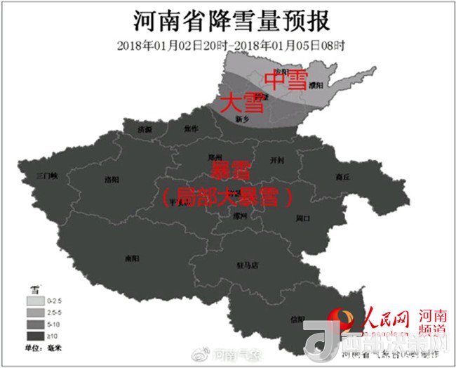 人民網(wǎng)鄭州1月2日電(戚藝芳)瑞雪兆豐年,河南將迎2018年首場強(qiáng)降雪。據(jù)河南省氣象臺最新消息,從2日夜間河南將開啟暴雪模式!-12℃+5級大風(fēng)+25cm積雪,可謂是入冬以來范圍最大、強(qiáng)度最強(qiáng)的降雪過程。