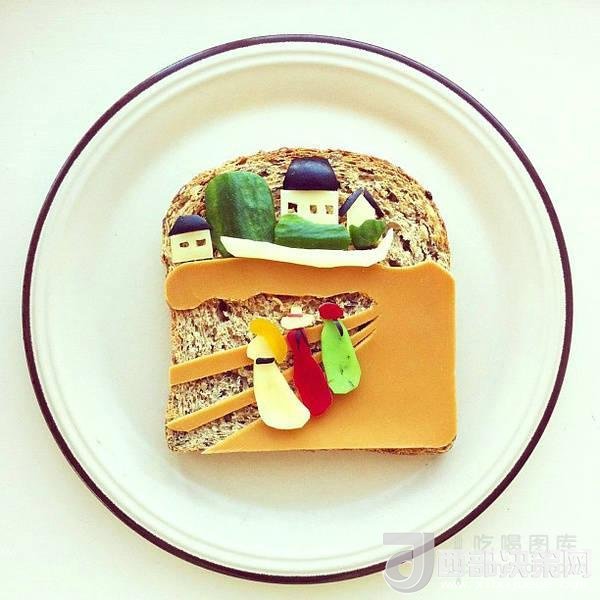 2012年,Ida Skivenes在網(wǎng)上看到一張用兩片土司擺出熊和狐貍造型的照片。受到啟發(fā)的她決定開始自己嘗試這種創(chuàng)意美食攝影。Skivenes用不同顏色的盤子作為背景,將各種食材擺放其上,組成一幅幅有趣畫面,然后用手機(jī)拍下來(lái)并分享在Instagram上。