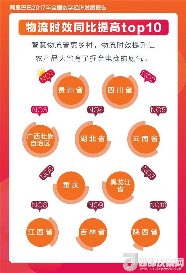 1月9日,阿里巴巴集團(tuán)發(fā)布“2017中國數(shù)字經(jīng)濟發(fā)展報告”(下稱報告),通過電商、新零售、支付、物流等大數(shù)據(jù)及就業(yè)指數(shù)、云棲指數(shù)等,展現(xiàn)2017年全國各省(市)數(shù)字經(jīng)濟發(fā)展活力。報告顯示,2017年重慶人均網(wǎng)購消費增長、物流時效提速等排名靠前,分別位列全國第七和第六。