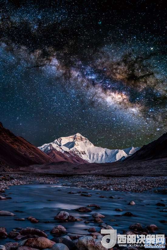 這是“2017喜馬拉雅星空攝影展”十佳西藏星空照片——《珠峰星河》。新華社發(fā)(李定謀 攝)