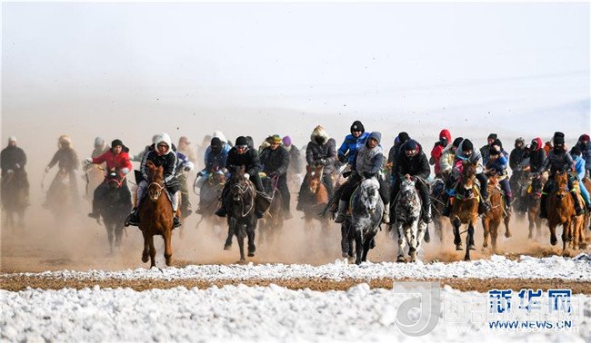 1月16日,在內(nèi)蒙古錫林浩特鳳凰馬場,牧民們進(jìn)行速度賽馬。