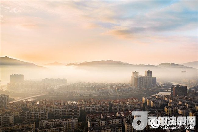 1月18日電1月18日,廣西上思縣城出現(xiàn)了平流霧奇觀,在朝陽渲染下的金黃色霧氣在低空緩緩地流動(dòng),樓房在霧氣中若隱若現(xiàn),宛若仙境。