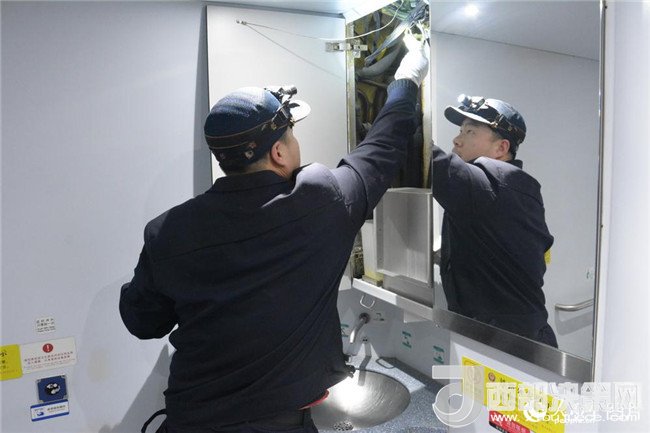 圖地勤機械師正在檢查給排水及衛(wèi)生系統(tǒng)。