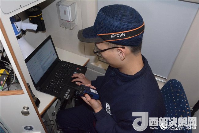 地勤機械師正在檢查動車組的計算機系統(tǒng)。