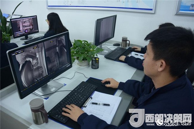 探傷工正在探查輪對空心軸。