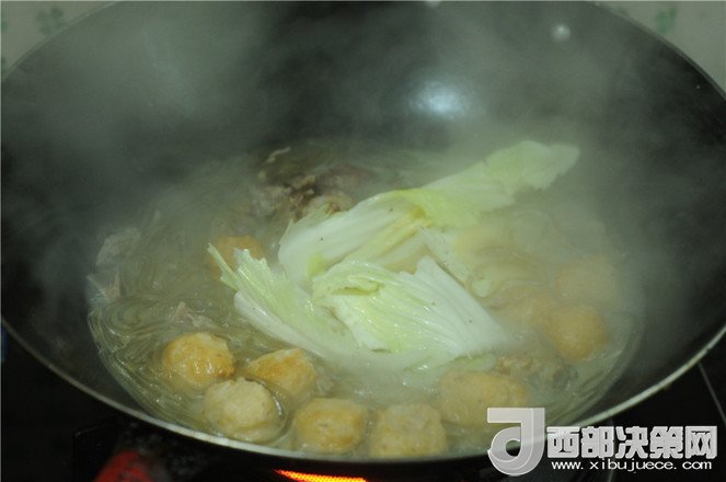 8.煮至丸子變大完全熟透,將排骨湯和排骨一起放入湯里