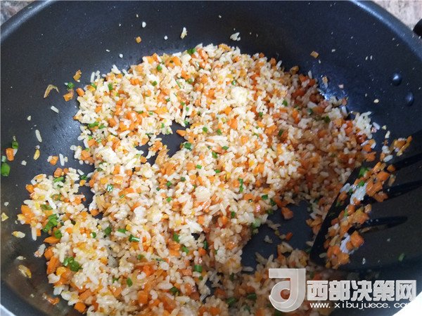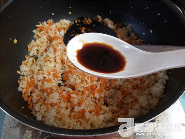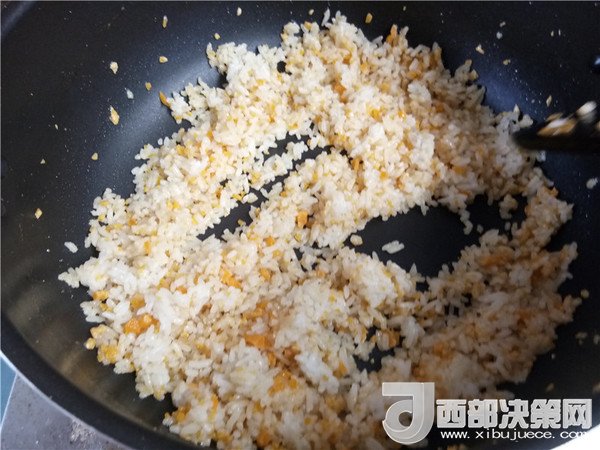 8.倒入米飯翻炒均勻。