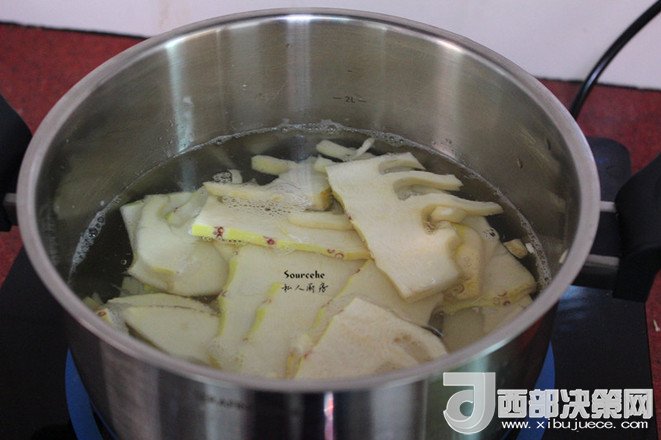 3.清水煮沸,汆燙筍,撈出過冷水;