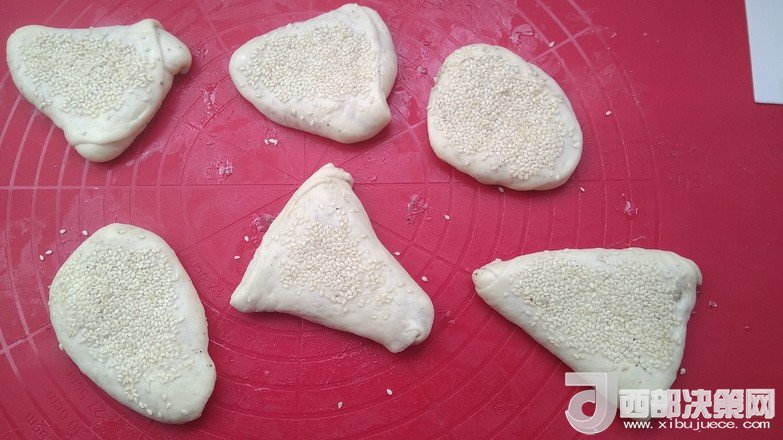 9.表層刷少許水撒上芝麻用手心壓實