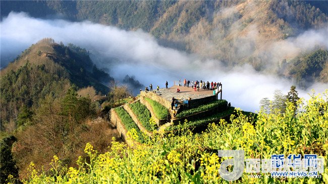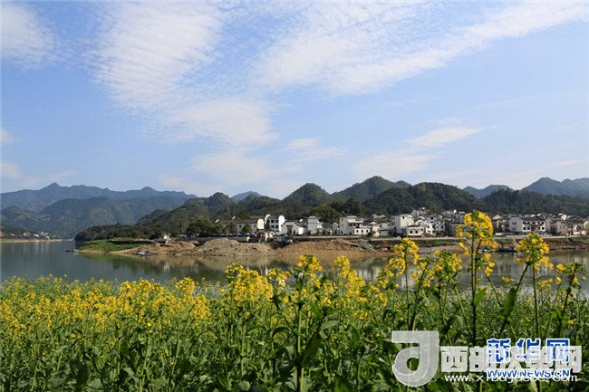 當(dāng)日,陽光燦爛,氣溫回升,安徽省黃山市歙縣境內(nèi)的石潭村、山水畫廓新安江、大洲源等地種植的油菜花陸續(xù)盛開,吸引著全國各地的游客到此觀光旅游。新華網(wǎng)發(fā)(潘成 攝)