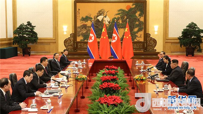 在會談中,習(xí)近平代表中共中央對金正恩首次訪問中國表示熱烈歡迎。習(xí)近平表示,你在中共十九大后電賀我再次當選中共中央總書記、就任黨中央軍委主席,前些天又第一時間電賀我再次當選國家主席、國家中央軍委主席,我對此表示感謝。此次來華訪問,時機特殊、意義重大,充分體現(xiàn)了委員長同志和朝黨中央對中朝兩黨兩國關(guān)系的高度重視,我們對此高度評價。