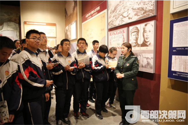 隨后,廣大師生在景區(qū)講解員分批帶領下逐一參觀了陜甘邊區(qū)蘇維埃政府(部委)舊址、南梁革命紀念館、抗大七分校舊址、軍民大生產基地舊址等愛國主義教育和革命傳統教育基地。一聲聲鏗鏘有力的講解,一張張真實可感的歷史圖片,一件件富有歷史內涵的文物展品,讓廣大師生不知不覺間憶想起了上世紀二、三十年代那烽煙四起、振奮人心的戰(zhàn)爭年代,邊走邊看、邊想邊問、邊學邊記,每一個學生看得認真、聽得仔細、問得具體,講解員們通過聲情并茂的講演,讓廣大師生深情了解了劉志丹、謝子長、習仲勛等老一輩無產階級革命家,扎根南梁、建立政權、救民愛民的光輝革命歷史,向每個人深刻詮釋了紅色南梁“兩點一存”的重要歷史地位和偉大“南梁精神”的豐富文化內涵。