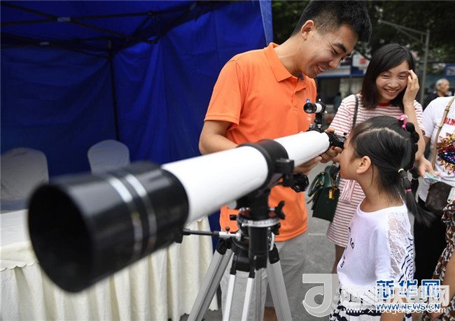 5月20日,一名小朋友在中科院成都分院活動(dòng)現(xiàn)場體驗(yàn)望遠(yuǎn)鏡。