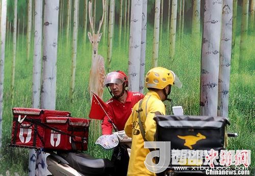 外賣配送員在送外賣。中新社記者張宇攝