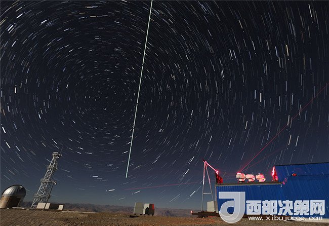 在西藏阿里觀測站,“墨子號”量子科學(xué)實(shí)驗衛(wèi)星過境,科研人員在做實(shí)驗(2016年12月10日攝,合成照片)。新華社記者 金立旺 攝