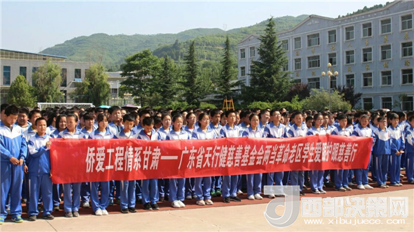西部決策網(wǎng)——西部大開(kāi)發(fā)訊(帥華鋒 通訊員 馬存福 漆小燕)2018年6月6日,第二十三個(gè)“全國(guó)愛(ài)眼日”當(dāng)天, “僑愛(ài)工程 情系甘肅”——廣東省天行健慈善基金會(huì)兩當(dāng)革命老區(qū)學(xué)生愛(ài)眼護(hù)眼慈善行啟動(dòng)儀式在隴南市兩當(dāng)縣香泉中學(xué)隆重舉行。國(guó)務(wù)院僑務(wù)辦公室國(guó)內(nèi)司張凌處長(zhǎng)、國(guó)務(wù)院僑務(wù)辦公室文化司李永清副處長(zhǎng),國(guó)務(wù)院僑務(wù)辦公室國(guó)內(nèi)司鄒傳彪副處長(zhǎng),甘肅省僑辦僑務(wù)工作處尹清敏處長(zhǎng),隴南市政府副秘書(shū)長(zhǎng)、市外僑辦主任馮虎明,隴南市衛(wèi)計(jì)委副主任孫旭東,兩當(dāng)縣人民政府副縣長(zhǎng)陳矛木,中山大學(xué)中山眼科中心王德才教授,中山大學(xué)中山眼科中心陳林興醫(yī)生,廣東省天行健慈善基金會(huì)創(chuàng)會(huì)會(huì)長(zhǎng)蔡光等領(lǐng)導(dǎo)及香泉中學(xué)全校師生800余人出席了本次啟動(dòng)儀式。