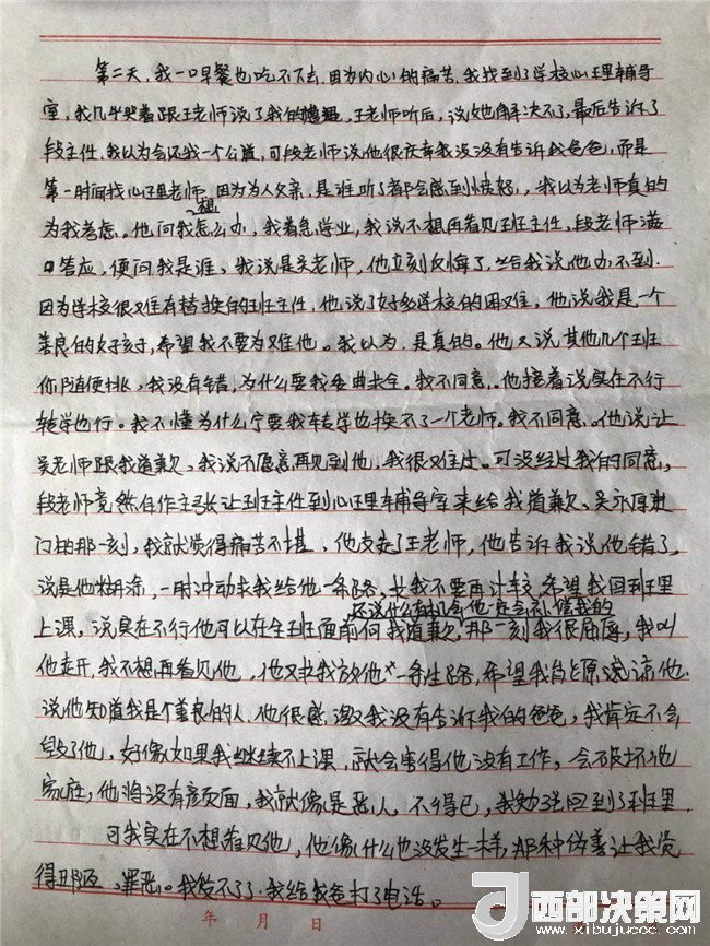 后來,當(dāng)段主任得知這位老師是吳某厚時(shí),馬上開始訴苦,學(xué)校有困難他辦不到,轉(zhuǎn)班轉(zhuǎn)學(xué)都可以。并在孩子不知情的情況下叫來了吳某厚跟孩子道歉。“在沒有經(jīng)過我女兒同意,在沒有人陪護(hù)的情況下,讓當(dāng)事人給我女兒道歉去了。后來女兒有一次生氣地的講,哪是道歉,就是來威脅我!我就想小孩本來7月份有一次,9月份發(fā)生這事(猥褻),孩子很無(wú)助的找心理輔導(dǎo)老師,找學(xué)校,那你還敢讓她單獨(dú)去面對(duì)我女兒,我都在想,學(xué)校哪來的那么大膽讓她兩單獨(dú)去見!”李某奕父親憤怒的說。