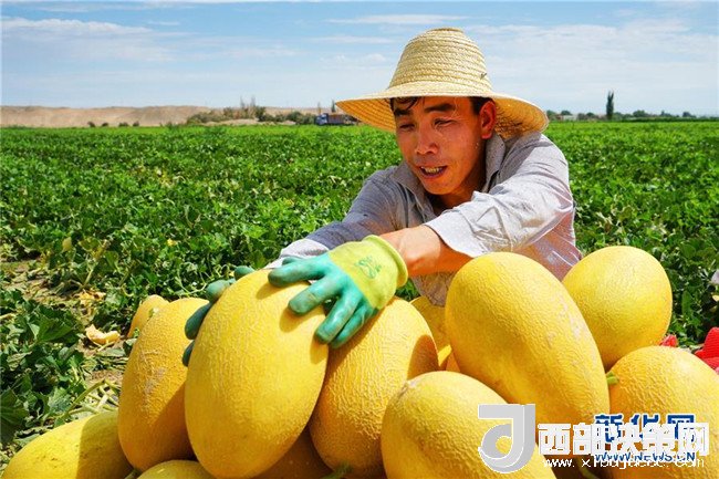 6月27日,新疆哈密市伊州區(qū)南湖鄉(xiāng)瓜農在分選哈密瓜。