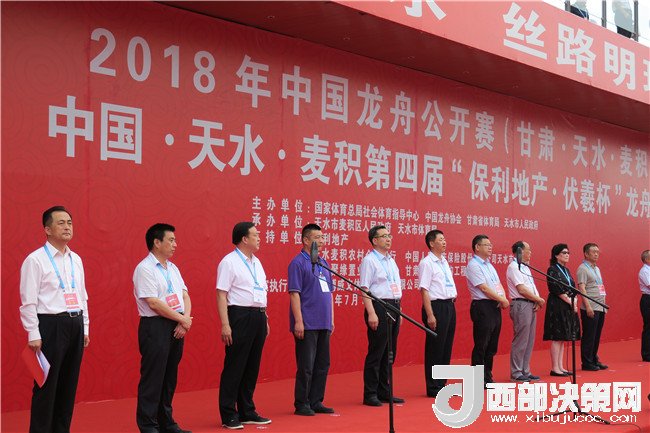 9時整,2018中國龍舟公開賽(天水麥積站)暨保利地產(chǎn)“伏羲杯”第四季龍舟大賽正式拉開序幕,來自全國及甘肅省的近25家代表隊展開激烈角逐。中國龍舟協(xié)會副主席劉北劍,天水市人大常委會主任、市委秘書長蔣曉強,天水市人大常委會原主任、市關(guān)工委主任李世榮,市委常委、常務(wù)副市長趙四輩,市委常委、宣傳部部長張建杰,市人大常委會副主任張克強,副市長、市公安局局長馬瑛,市政協(xié)副主席屈光平,市政協(xié)副主席、麥積區(qū)委書記張智明,國家體育總局社會體育指導(dǎo)中心二部主任、國際龍舟協(xié)會副秘書長、亞洲和中國龍舟協(xié)會秘書長余漢橋,省體育局群眾體育處處長武志峰,市人大常委會秘書長楊坤,市政府副秘書長、外事僑務(wù)辦主任張有信,麥積區(qū)人大常委會主任賈應(yīng)珍等出席開幕式,并為龍舟點睛。
