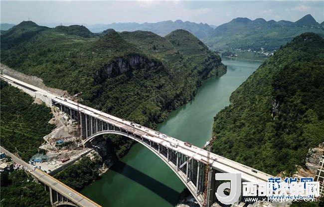 貴州織普高速公路控制性工程——夜郎湖特大橋日前實(shí)現(xiàn)全線貫通,預(yù)計(jì)本月底可全面建成。該橋由貴州橋梁建設(shè)集團(tuán)于2016年5月開始施工,全長(zhǎng)391.4米,拱圈凈跨徑210米。據(jù)了解,織普高速全長(zhǎng)約52公里,建成后由織金縣到普定縣的車程可從原來的2.5小時(shí)縮短到35分鐘,將大幅提高通行效率,進(jìn)一步推動(dòng)沿線經(jīng)濟(jì)發(fā)展。新華社記者 陶亮 攝