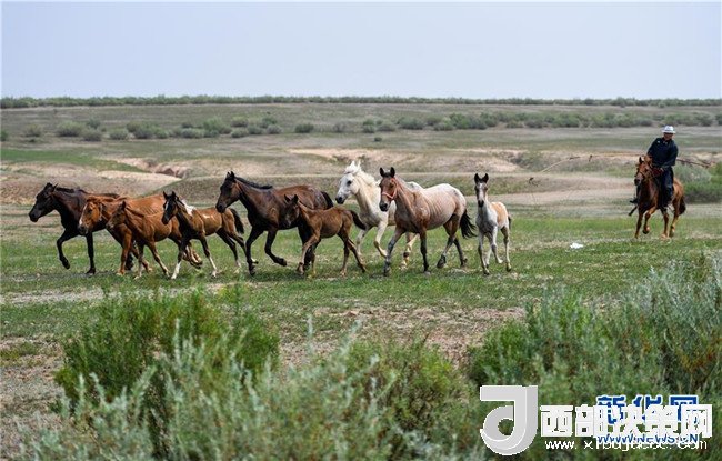 呼日查畢力格在度假營(yíng)趕著馬群(7月21日攝)。