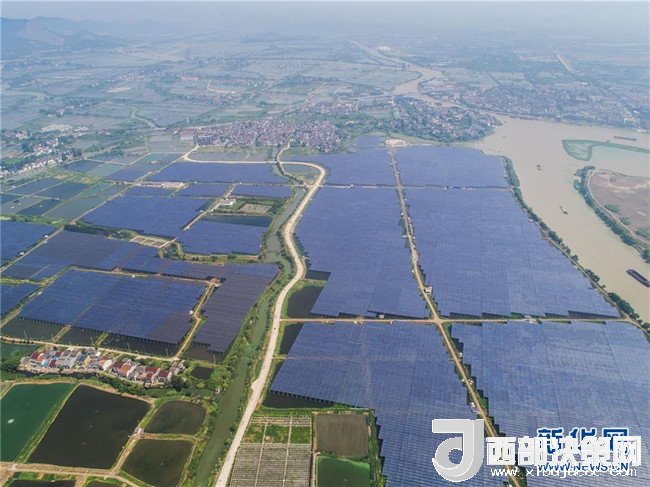 該項目建設(shè)在1800畝魚塘上,形成了板上發(fā)電、板下養(yǎng)魚的獨特景觀,項目裝機(jī)容量60兆瓦,所發(fā)電量全部并入電網(wǎng)。 近年來,浙江省湖州市大力實施能源項目,以太陽能、水能、風(fēng)能等清潔能源替代化石能源,因地制宜實施農(nóng)光互補(bǔ)、漁光互補(bǔ)、林光互補(bǔ),不僅形成了一條集光伏發(fā)電、農(nóng)業(yè)種植、漁業(yè)養(yǎng)殖、林業(yè)休閑、旅游觀光于一體的生態(tài)旅游農(nóng)業(yè)光伏產(chǎn)業(yè)鏈,更有效推動了能源結(jié)構(gòu)的持續(xù)優(yōu)化,為湖州生態(tài)文明建設(shè)注入綠色動能。截至2018年6月底,湖州市新能源發(fā)電裝機(jī)達(dá)到145萬千瓦,比2017年同期增長40%;2018年上半年累計新能源發(fā)電量8.59億千瓦時,同比增長51%,相當(dāng)于減少煤炭使用量約34.7萬噸,減少二氧化碳排放約85.64萬噸。新華社記者 徐昱 攝