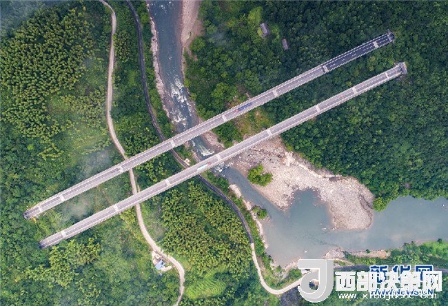 7月26日,霍山縣磨子潭鎮(zhèn)。二輛汽車行駛在濟廣高速公路磨子潭特大橋上。
