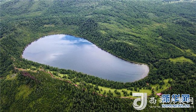 8月5日拍攝的阿爾山天池(無人機(jī)全景拍攝)。