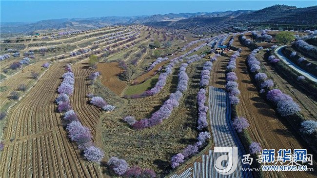 寧夏固原市彭陽(yáng)縣金雞坪梯田公園(2017年4月13日攝)。 新華社記者 王鵬 攝
