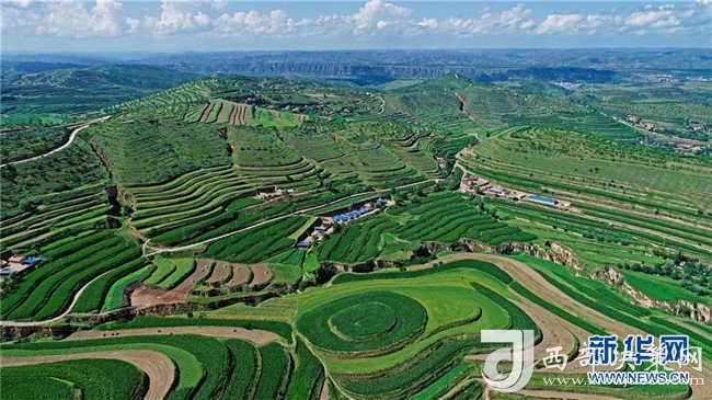 寧夏固原市彭陽(yáng)縣金雞坪梯田公園(7月16日攝)。 新華社記者 王鵬 攝