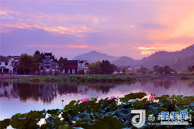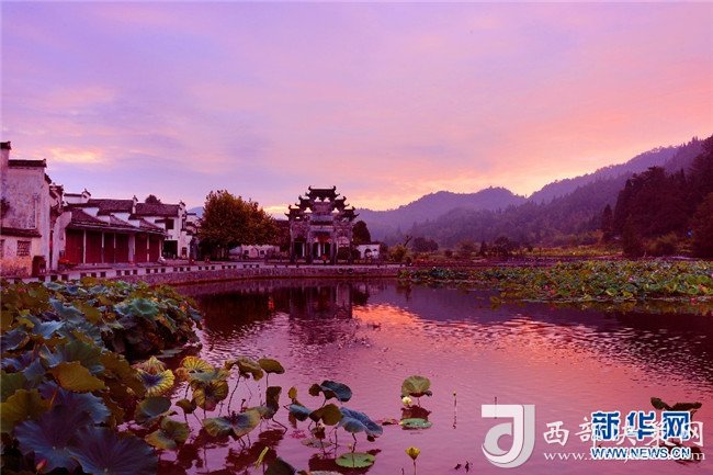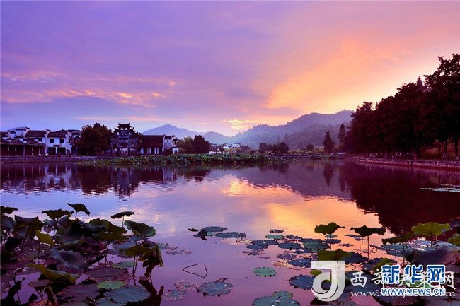 8月4日,色彩絢麗的朝霞,映射安徽皖南西遞古村。